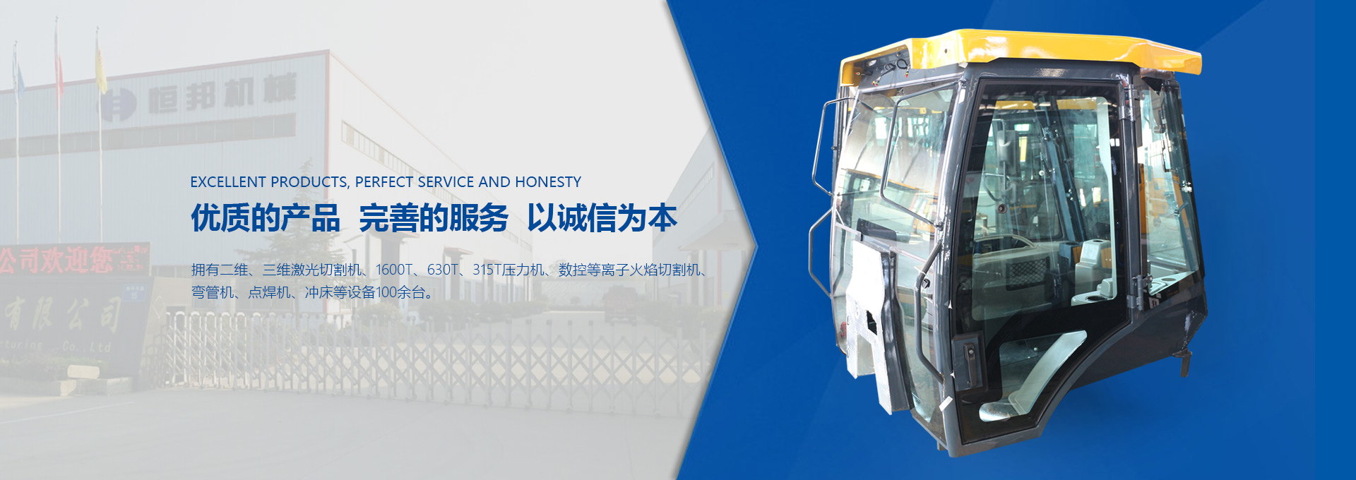 揚州市恒邦機械制造有限公司位于風景秀麗的揚州市江都區(qū)丁伙工業(yè)園區(qū)。瀕臨長江,緊靠京滬高速、啟揚高速,地理條件優(yōu)越,交通營運便利。我公司集多年模具開發(fā)和鈑金制造經驗,自2009年起,專注生產工程機械駕駛室、配重塊、覆蓋件和特種駕駛室。研發(fā)設計技術人員30名,員工300名?,F代化生產車間20000平米。...